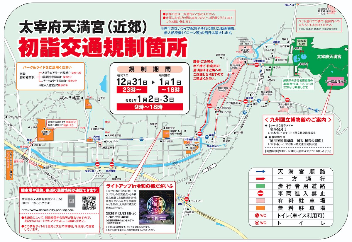 太宰府天満宮周辺の交通規制案内図(令和八年ver.PDF※太宰府市)